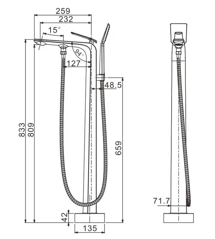 Напольный смеситель для ванны Rose R1322H чёрный матовый