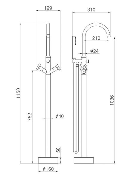 Смеситель для ванны напольныйМатериал: латунь