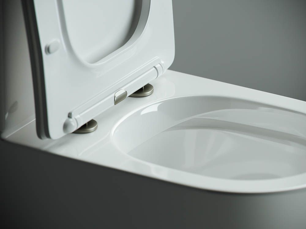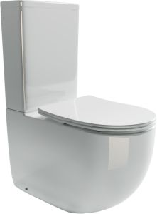 Напольный пристенный унитаз с бачком Metropol Rimless, двойной смыв 3/6, нижняя подводка глубокий смыв, горизонтальный (универсальный) выпуск, с крепежом, ультра тонким сидением с функцией плавного закрытия, дюропласт