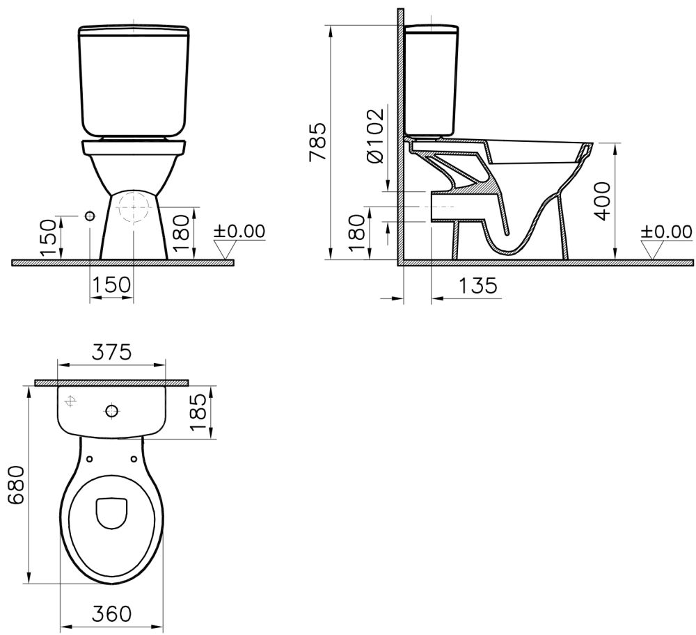 Прилегание унитаза к стене:вплотную