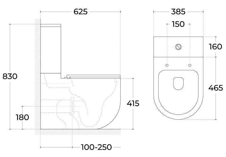 Прилегание унитаза к стене:с отступом