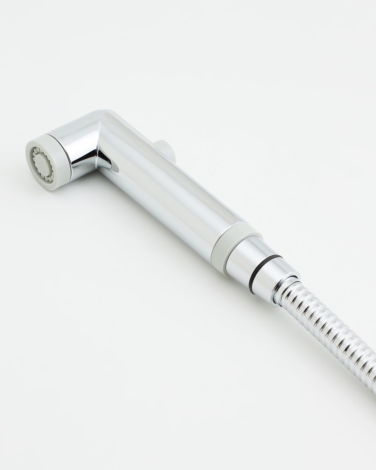 Смеситель скрытого монтажа с гигиеническим душем Orange Karl заинтересует всех, кто ценит строгие, четкие линии и интерьеры в стиле минимализм. Небольшой встраиваемый корпус занимает мало места и не требует больших углублений в стене. Декоративная розетка диаметром 8 см аккуратно закроет монтажные отверстия. Легкое управление напором и температурой воды подарит фирменный картридж Orange. Уход за хромовым покрытием прост – достаточно регулярной очистки мягкой салфеткой. В комплекте гигиенический набор - гиг.лейка d 26 мм (1 режим струи) и шланг (120 см, в металлической оплетке, с защитой от перекручивая), держатель лейки на корпусе смесителя.