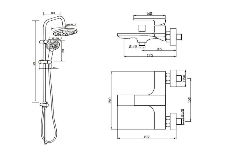 Душевая система с смесителем для ванны/душа в цвете черный матовый: верхний душ (d200 мм) создаёт эффект тропического дождя, что дарит непередаваемые эмоции во время ежедневных банных процедур. Ручной душ 100 мм (3 режима) на гибком полутораметровом шланге (в металлической оплетке) с защитой от перекручивания. Держатели верхнего и ручного душа с регулировкой угла наклона, штанга 970 мм. Подвижные детали отличаются долговечностью. Фиксируется душевая система непосредственно на стене, что позволяет рационально использовать ограниченное пространство ванной комнаты. Модное на сегодняшний день покрытие чёрного цвета, за которым просто ухаживать мягкой салфеткой, получено порошковой окраской с многоступенчатой системой подготовки и высокотемпературной обработкой.