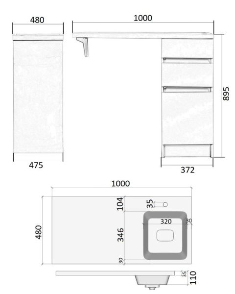 Тумба с раковиной под стиральную машину Orange Optima, правая, белый, ST-40TUW+RAROrange OPTIMA ST-40TUW+RAR Тумба напольная с правой раковиной под стиральную машину. Предназначена для использования в ванных комнатах с повышенной влажностью. Тумба укомплектована выдвижным ящиком, также для хранения предусмотрен нижний отсек с дверцей. Фасад - МДФ в цвете белый глянец, покрытие пленка ПВХ. Корпус - ЛДСП в цвете белый глянец. Раковина с одним отверстием под смеситель (материал - искусственный камень).В комплекте ножки подпятники 4 шт (регулировка по высоте до 10 мм) и кронштейн для крепления крыла раковины.