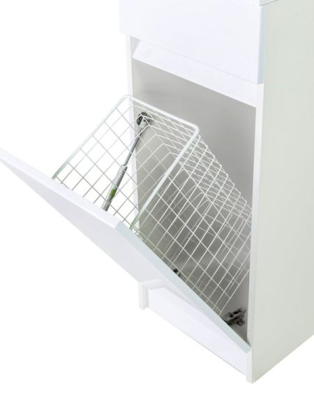 Тумба с раковиной под стиральную машину Orange Optima, правая, белый, с корзиной для белья, STK-40TUW+RAROrange OPTIMA STK-40TUW+RAR Тумба напольная с правой раковиной под стиральную машину c корзиной для белья. Предназначена для использования в ванных комнатах с повышенной влажностью. Откидная дверца с корзиной для белья оснащена механизмом плавного открывания. Фасад - МДФ в цвете белый глянец, покрытие пленка ПВХ. Корпус - ЛДСП в цвете белый глянец. Раковина с одним отверстием под смеситель (материал - искусственный камень).В комплекте ножки подпятники 4 шт (регулировка по высоте до 10 мм) и кронштейн для крепления крыла раковины.