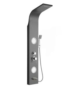 - Комплектация: душевая панель, душевая лейка, смеситель, шланг для душа, верхний душ, крепеж, инструкция