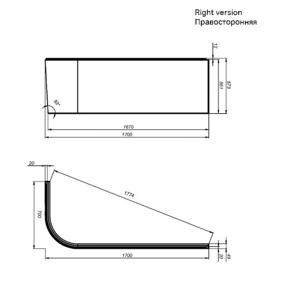 Панель фронтальная для ванны Am.Pm X-Joy W94A-170R70W-P 170 см белый