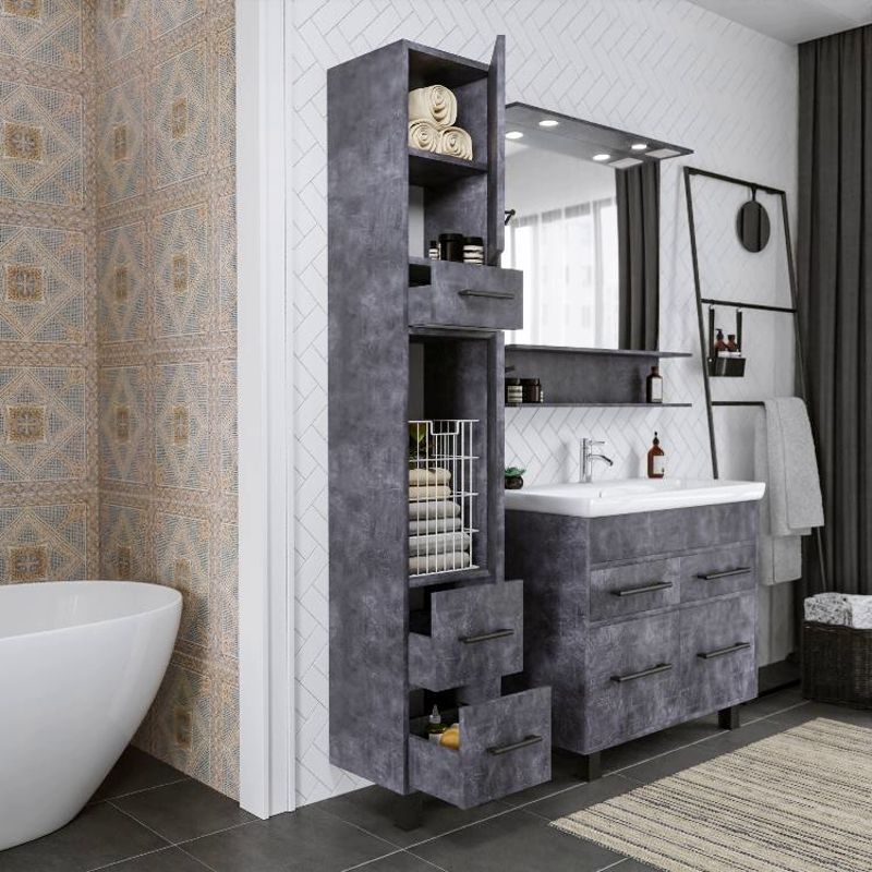 Шкаф-пенал для ванной комнаты – это стильное решение, которое гармонично вписывается в современный интерьер. Его элегантные линии и аккуратные формы создают атмосферу чистоты и порядка, что особенно важно в таком интимном пространстве. Изготовленный из качественных влагостойких материалов, этот шкаф обеспечивает долговечность и надежность, даже в условиях повышенной влажности.