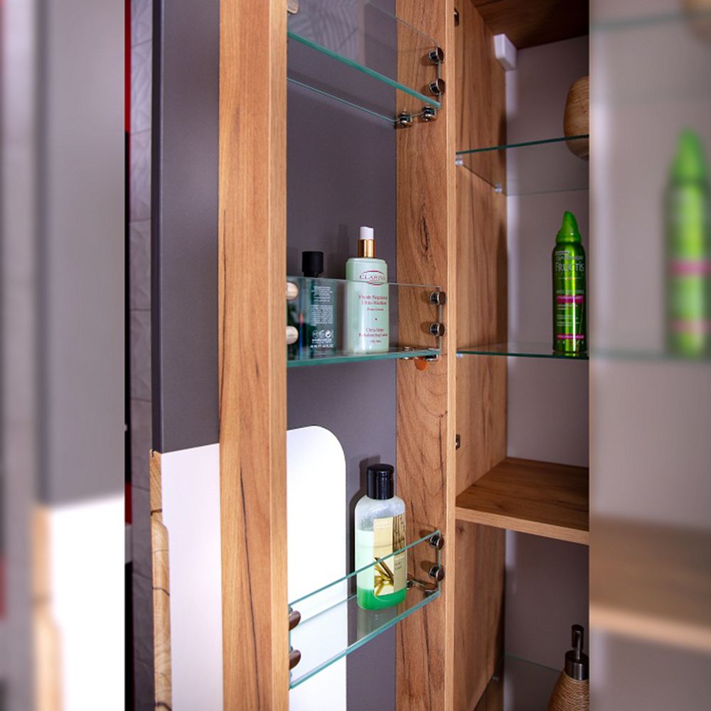 Основное преимущество шкаф-пенала заключается в его вместительности. Удобные полки и ящики позволяют организовать пространство и разместить все необходимое: от косметики до бытовых принадлежностей. Каждая деталь продумана для удобства использования, что делает утренние и вечерние ритуалы более приятными.
