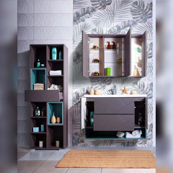 Основное преимущество шкаф-пенала заключается в его вместительности. Удобные полки и ящики позволяют организовать пространство и разместить все необходимое: от косметики до бытовых принадлежностей. Каждая деталь продумана для удобства использования, что делает утренние и вечерние ритуалы более приятными.