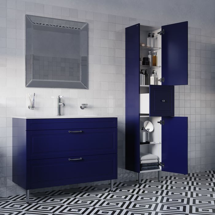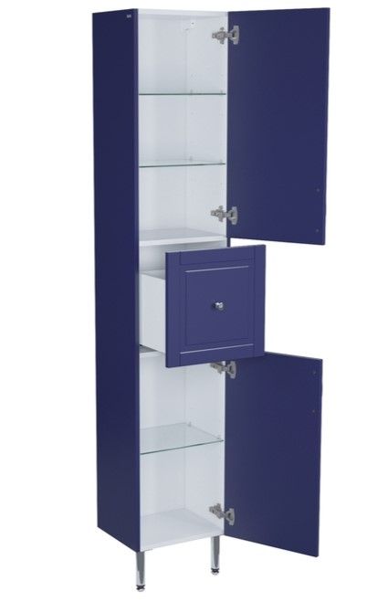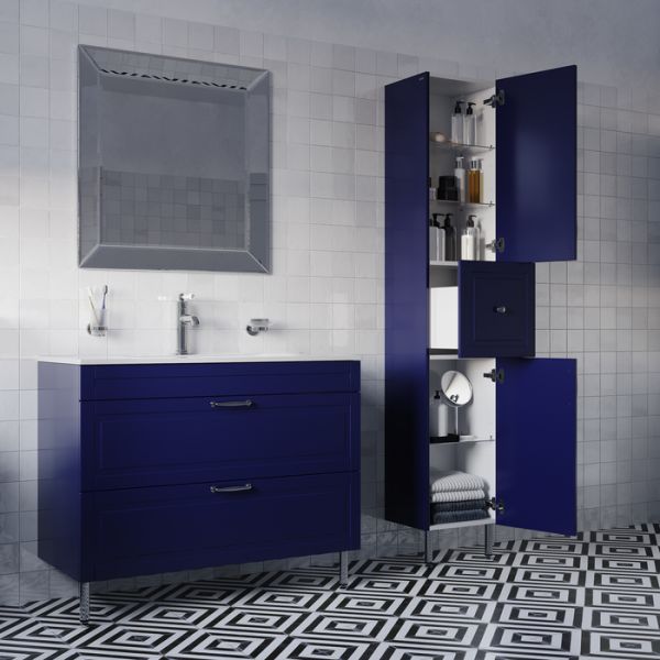 Напольный пенал Oxford в красивом синем оттенке – модное сочетание классического стиля и стиля ретро. Он органично впишется в интерьер благодаря элегантному фрезерованному фасаду и узнаваемому дизайну.