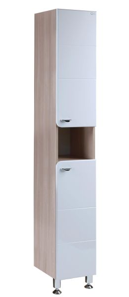 Напольный пенал для ванной комнаты пенал Onika СТИЛЬ 30 гармонично сочетает в себе контрастные цвета и фактуры: белый глянец на фоне натурального дерева ясень шимо светлый очень эффектно смотрится в любых интерьерах ванной комнаты.