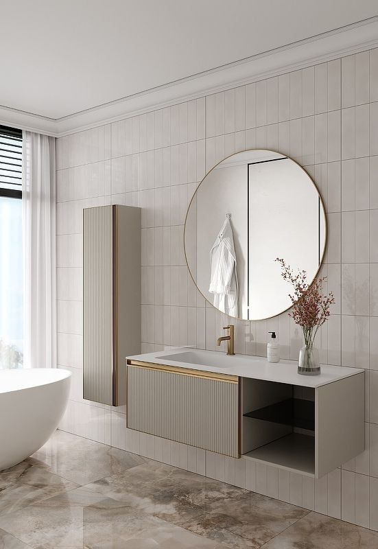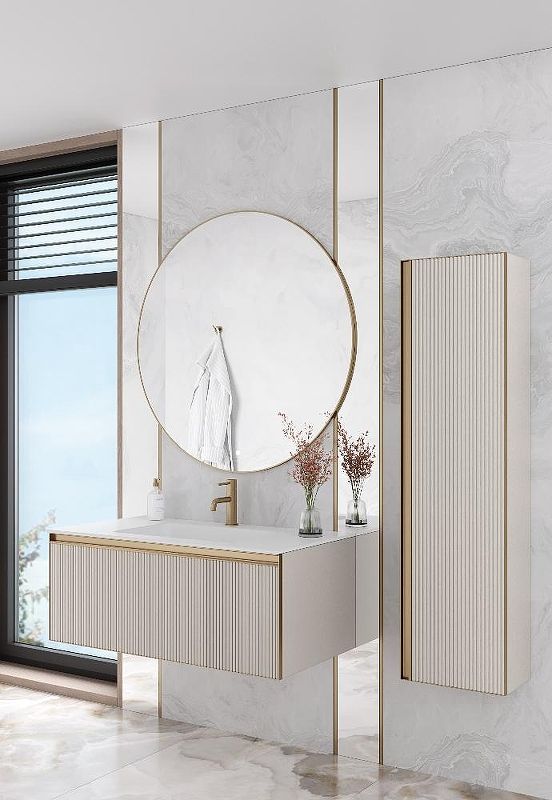 Пенал Armadi Art Quatro 791-CM-RIB-MG, 35 см, подвесной, цвет cashmere fuga профиль золото матовое