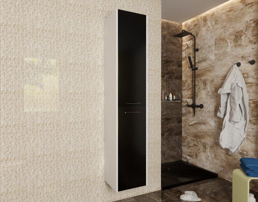 Коллекция Vegas разработана в современном стиле с учетом комфорта и функциональности. За счет вкладных фасадов мебель возможно выполнить в двухцветном исполнении абсолютно в любом сочетании (по каталогу RAL). Vegas дает возможность исполнить индивидуальное решение. Пенал состоит из двух частей. В верхней части расположены 2 полки для хранения бытовых принадлежностей. В нижней части пенала расположена полка, дополнительно возможна установка бельевой корзины.