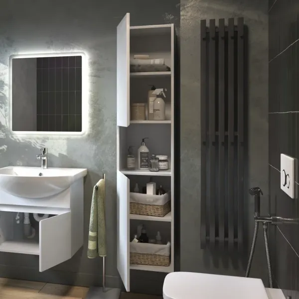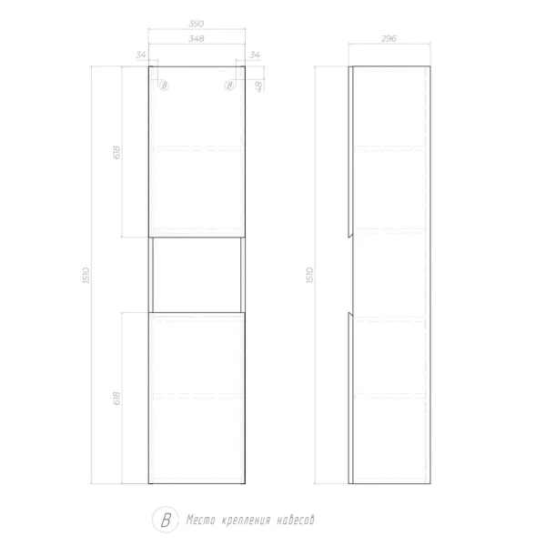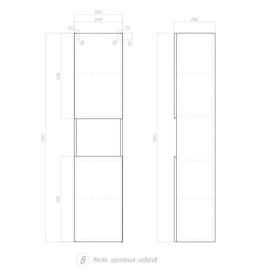 Пенал VIGO Wing 35см, белый: 2 дверцы, петли с механизмом доводчика, 4 полки ЛДСП, интегрированная ручка, 2 навеса. Универсальная (петли дверок перевешиваются на разные стороны).