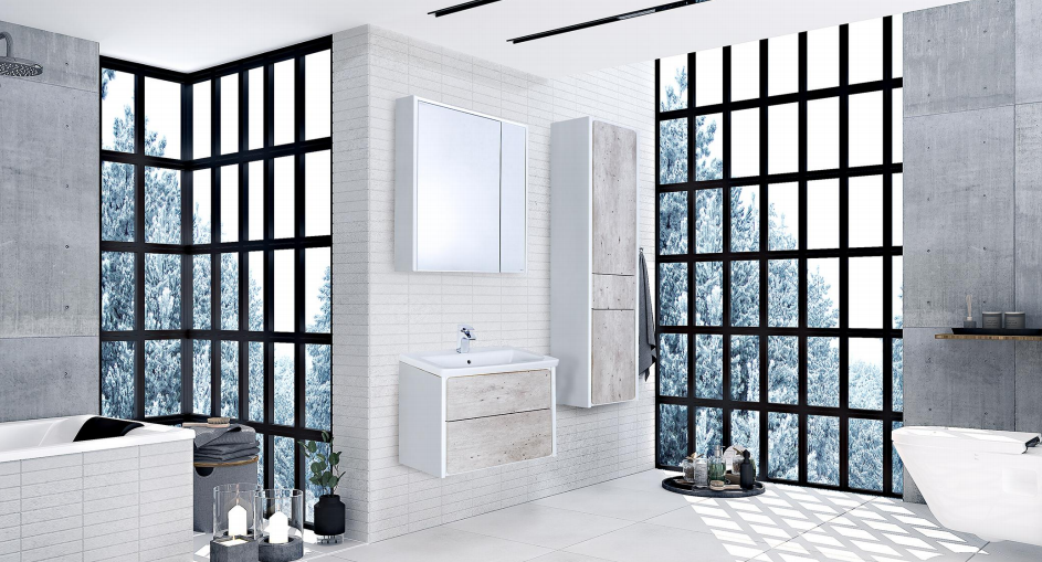 Пенал Roca Ronda ZRU9303006 правый бетон/белый глянец Шкаф-колонна:- петли Blum c плавным доводом- регулируемые полочки из просветленного/затемненного* стекла- ящик полного выдвижения с системой push-to-open