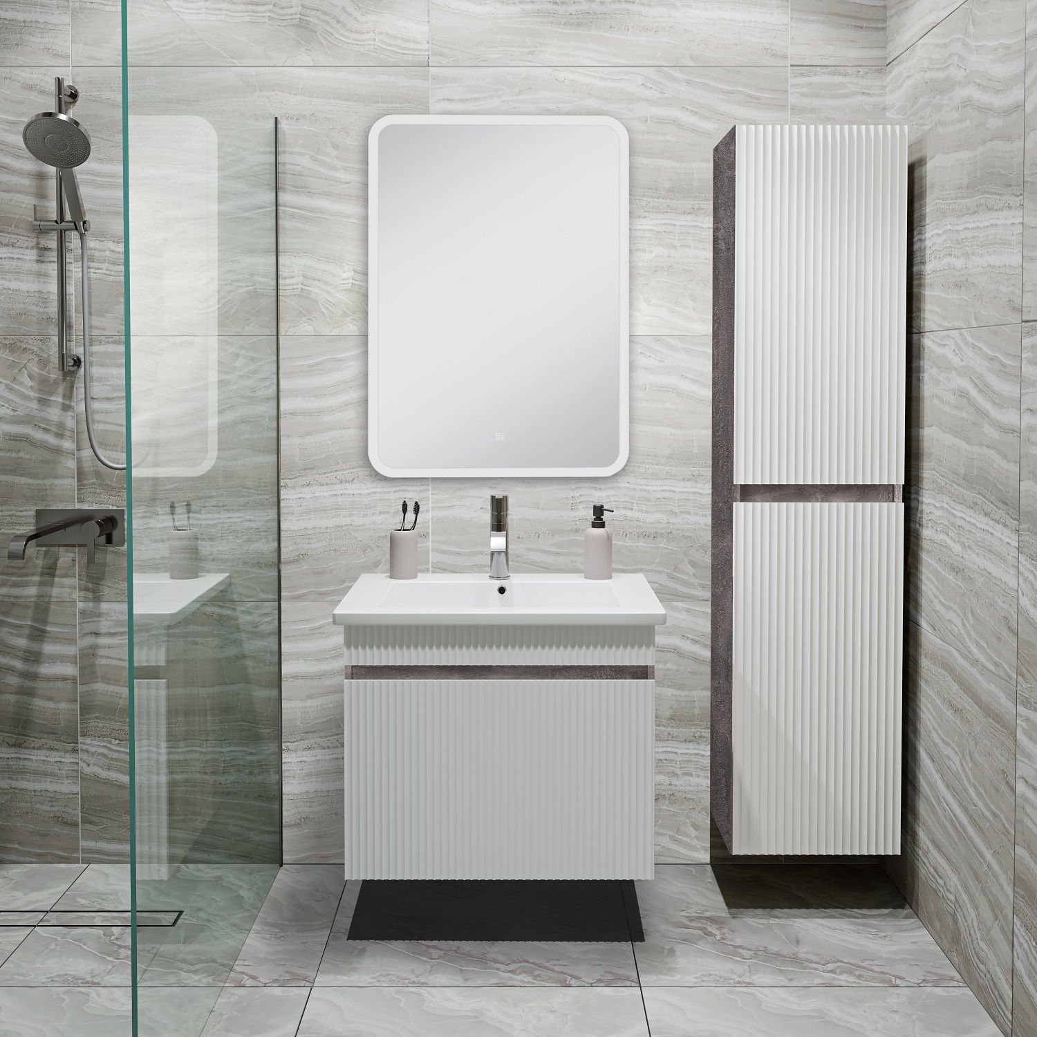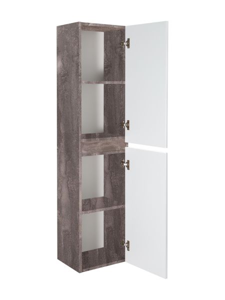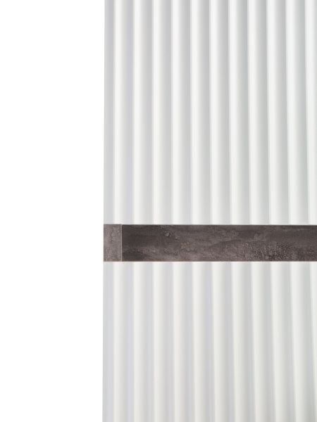 Шкаф пенал для ванной комнаты RUNO МОДЕНА (подвесной) – это изысканность и утончённая роскошь в интерьере. Волнистые рифленые фасады визуально «оживляют» и «приводят в движение» всю обстановку комнаты, сохраняя при этом умиротворение и покой, превосходно сочетаются с древесной фактурой и текстурой необработанного натурального камня корпуса. Цвет корпуса в двух цветах: текстура светлого дерева или необработанного натурального камня. Цвет фасада классический – белый глянец, идеально впишутся в любой интерьер ванной комнаты. Шкаф в ванную комнату оснащён двумя распашными дверцами, в каждом отделении по одной встроенной полке. Каждая дверца укомплектована двумя петлями, верхняя с доводчиком, нижняя без доводчика. Мебель для ванной RUNO - красота и практичность в мелочах, шкаф пенал для ванной комнаты Модена – лучший выбор для Вашей ванной комнаты!