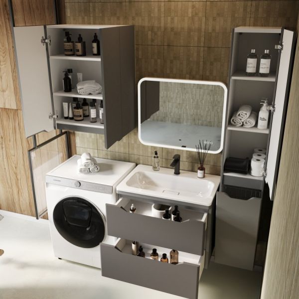 Пенал Style Line Марелла 30 Люкс Plus СС-00002420 с бельевой корзиной серый матовый