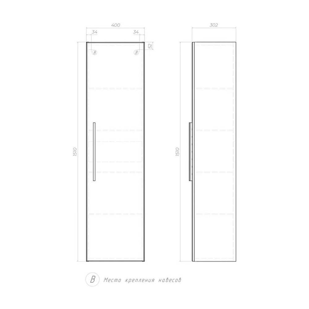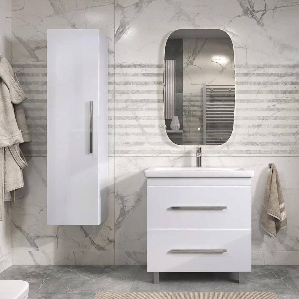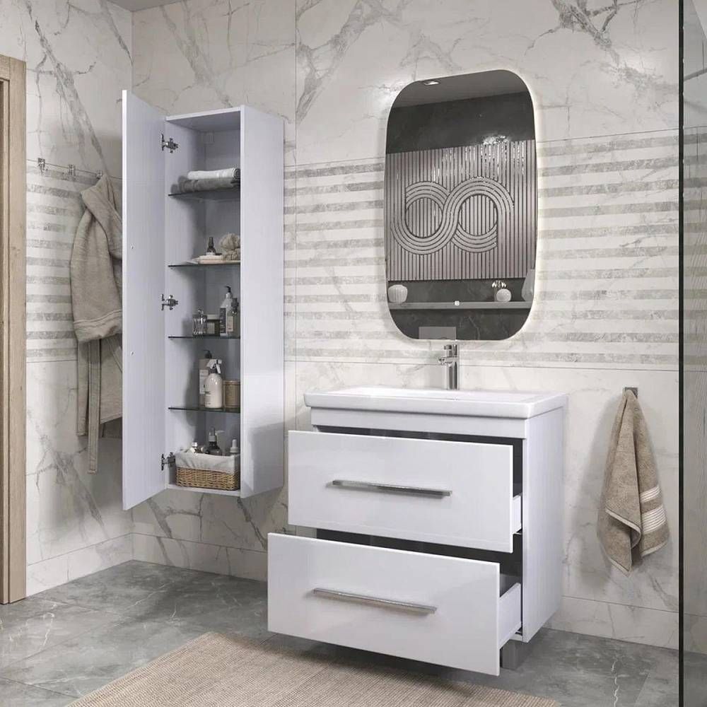 Пенал VIGO Land 40см, белый. 1 дверца, 4 стеклянные полки, ручка металлическая хромированная.