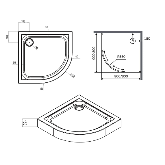 - Форма: 1/4 круга
