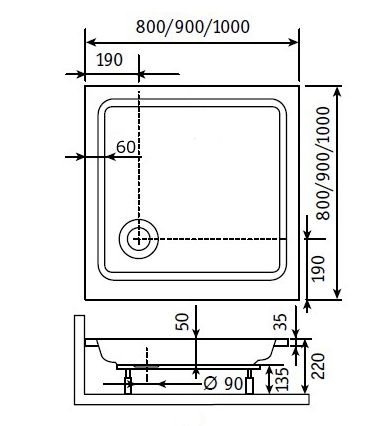 Акриловый поддон для душа