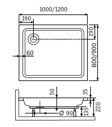 Поддон для душа RGW STYLE PR 800х1200х220