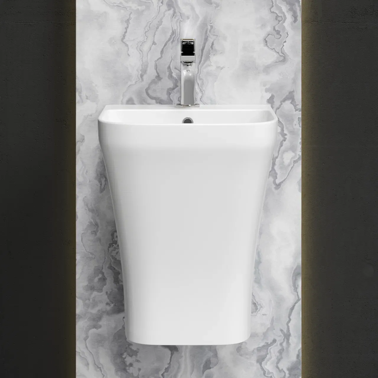 Раковина моноблок подвесная DION с отверстием под смеситель, со сливом переливом