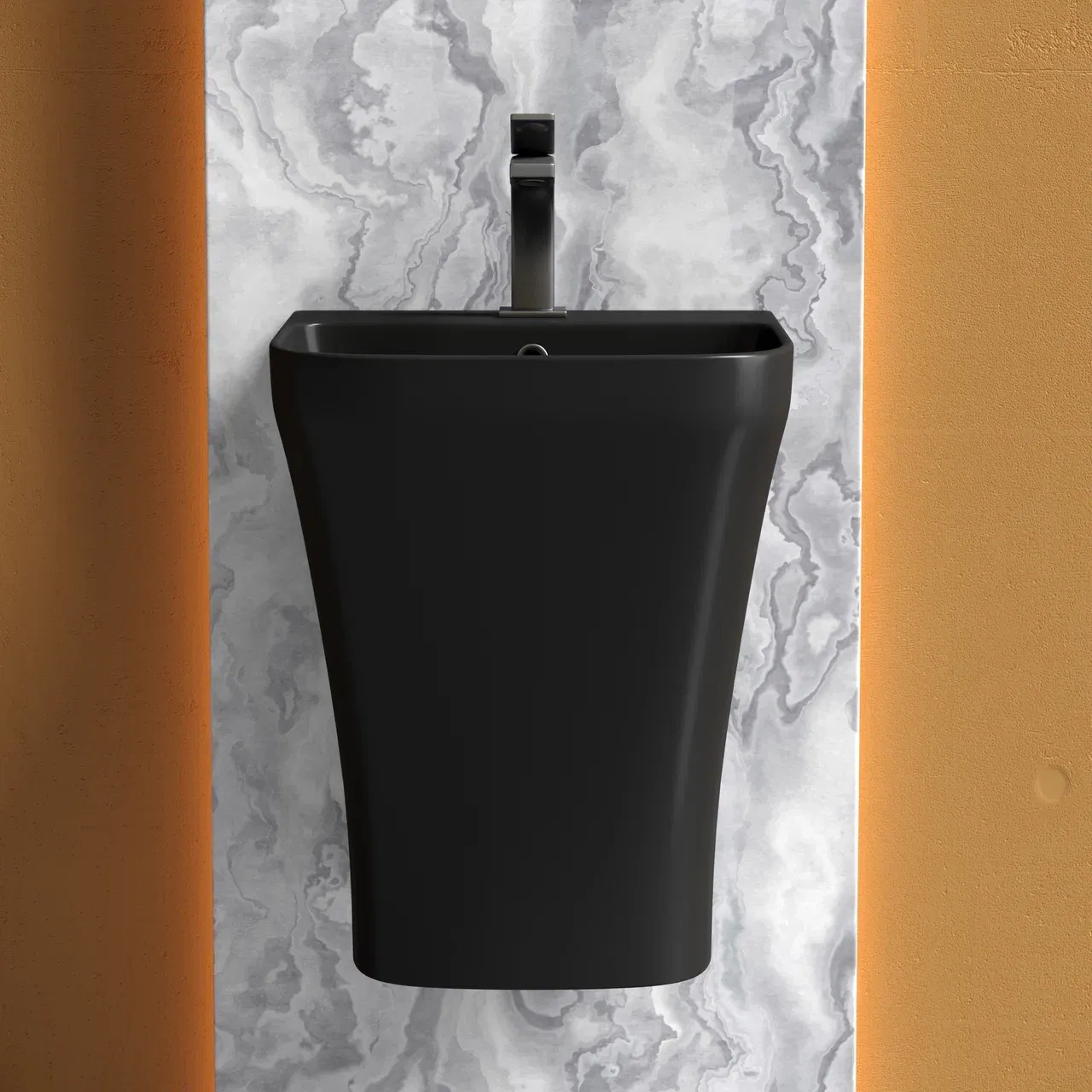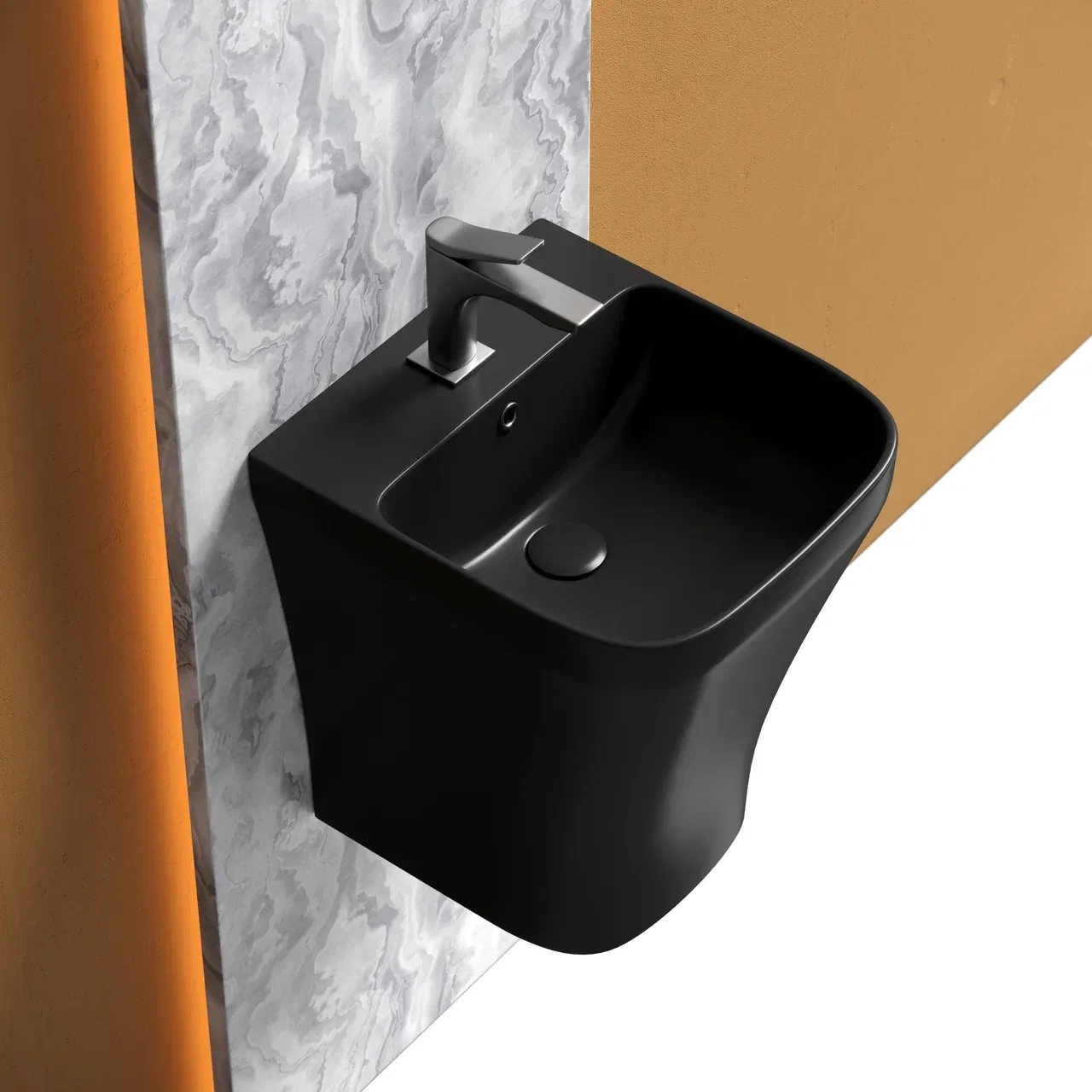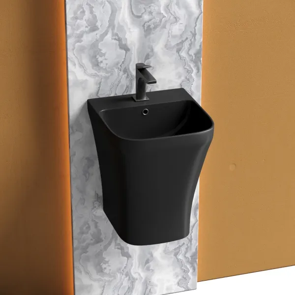 Раковина моноблок подвесная DION (цвет Чёрный Матовый) с отверстием под смеситель, со сливом переливом