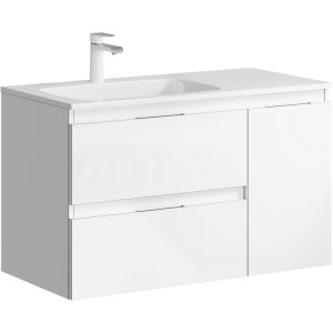 Подвесная тумба под раковину Aqwella Accent ACC0109LW 90 смПодвесная тумба с двумя ящиками и одной дверью в белом цвете с умывальником из литьевого мрамора (чаша слева)