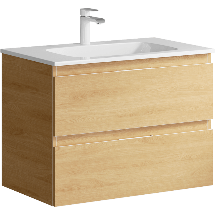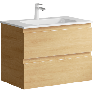 Подвесная тумба под раковину Aqwella Accent ACC0175DZ 75 смПодвесная тумба с двумя ящиками в цвете дуб золотой с умывальником из литьевого мрамора