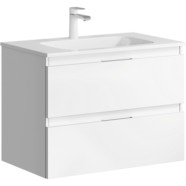 Подвесная тумба под раковину Aqwella Accent ACC0175W 75 смПодвесная тумба с двумя ящиками в белом цвете с умывальником из литьевого мрамора