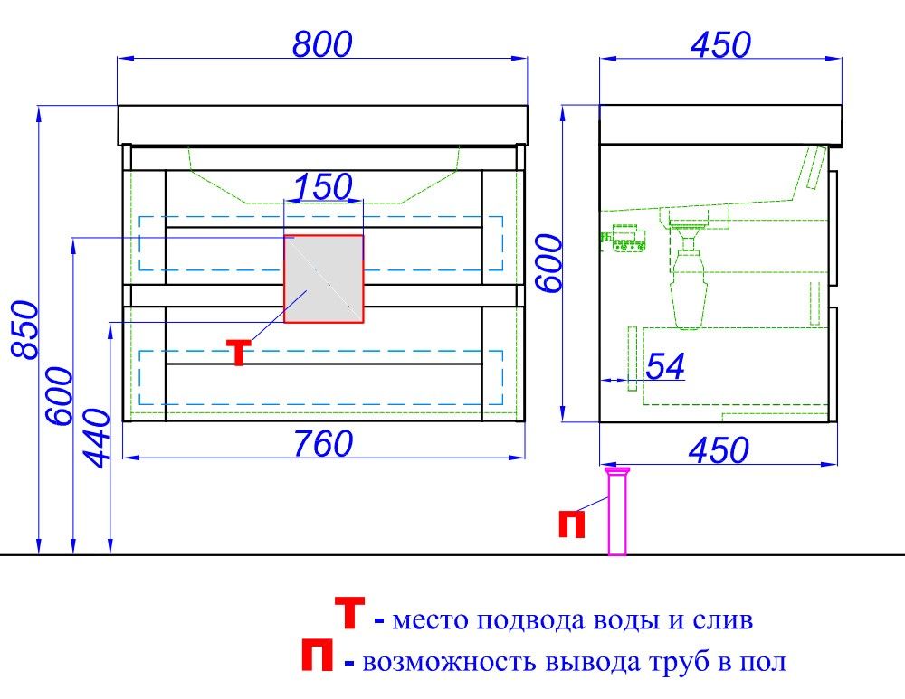 - Тумбы поставляются в подвесном исполнении с двумя ящиками.