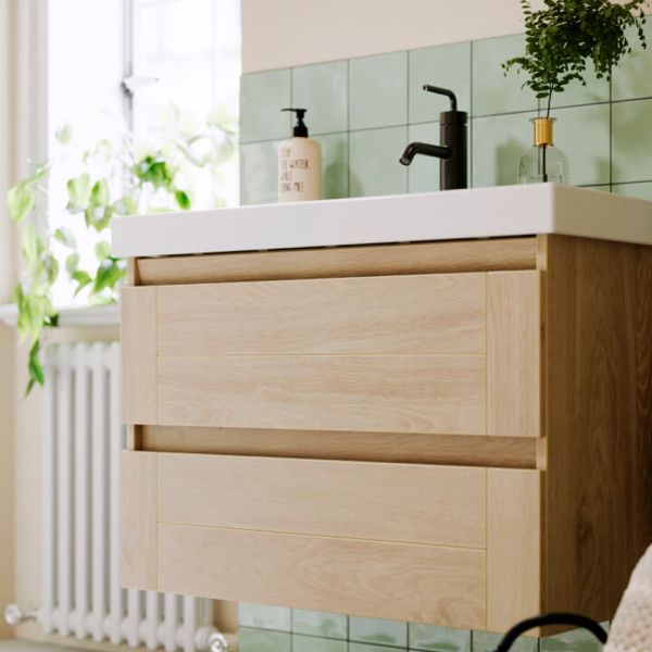 - Фасады и корпус выполнены из ЛДСП (древесностружечной плиты повышенной плотности) в цвете дуб давос.