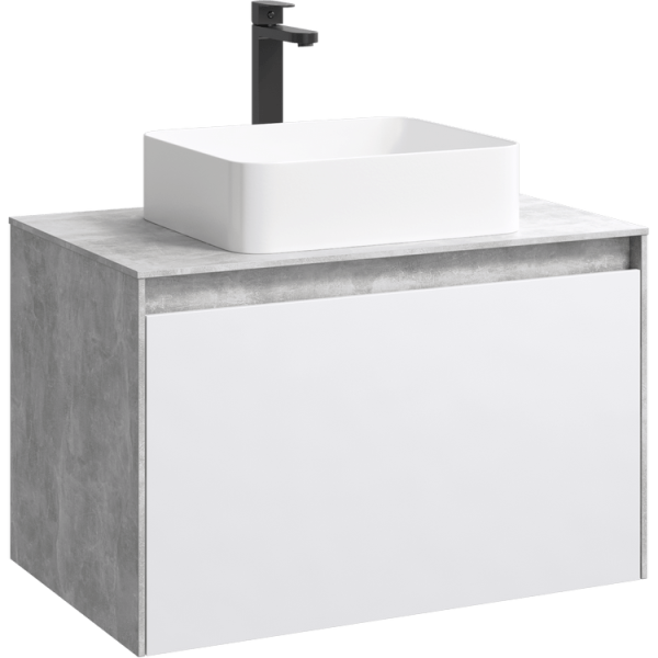 Подвесная тумба под раковину Aqwella Mobi MOB0108BS+MOB0708W 80 смПодвесная тумба 80 см с двумя ящиками: основной и внутренний, скрытый за фасадом. Цвет бетон светлый/белый; с умывальником