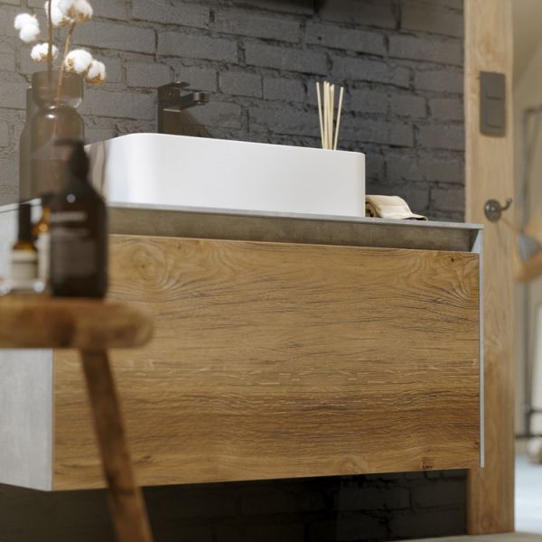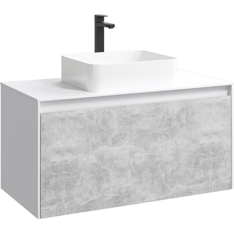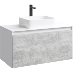 Подвесная тумба под раковину Aqwella Mobi MOB0110W+MOB0710BS 100 смПодвесная тумба 100 см с двумя ящиками: основной и внутренний, скрытый за фасадом. Цвет белый/бетон светлый; с умывальником