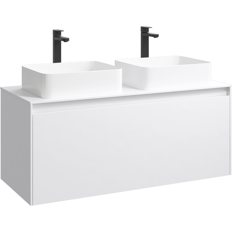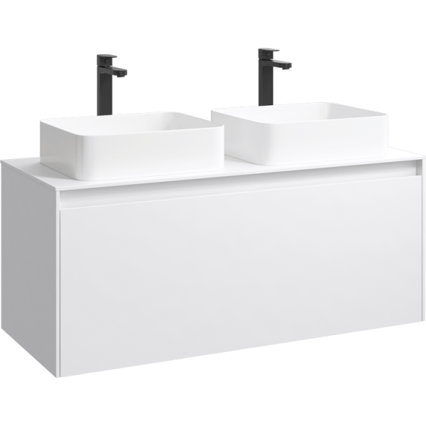 Подвесная тумба под раковину Aqwella Mobi MOB0112W+MOB0712W 120 смКоллекция Mobi гармонично вписывается в интерьер любой современной ванной комнаты. Так как существует возможность комбинировать фасады и корпуса трех цветов: бетон светлый, дуб балтийский и белый глянец.Подвесная тумба 120 см с двумя ящиками: основной и внутренний, скрытый за фасадом. Цвет белый; с умывальником
