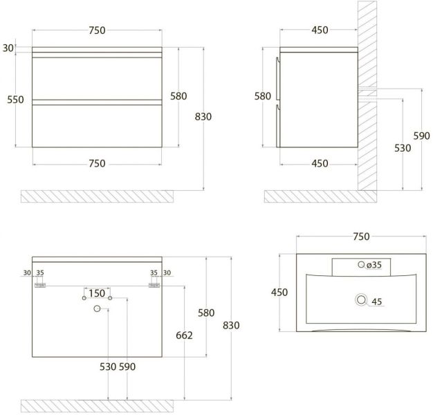 - Рекомендуемая высота от пола: 830 мм