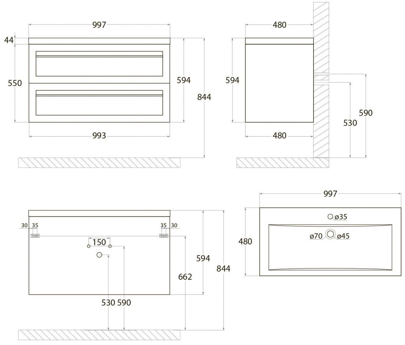 - Рекомендуемая высота от пола: 844 мм