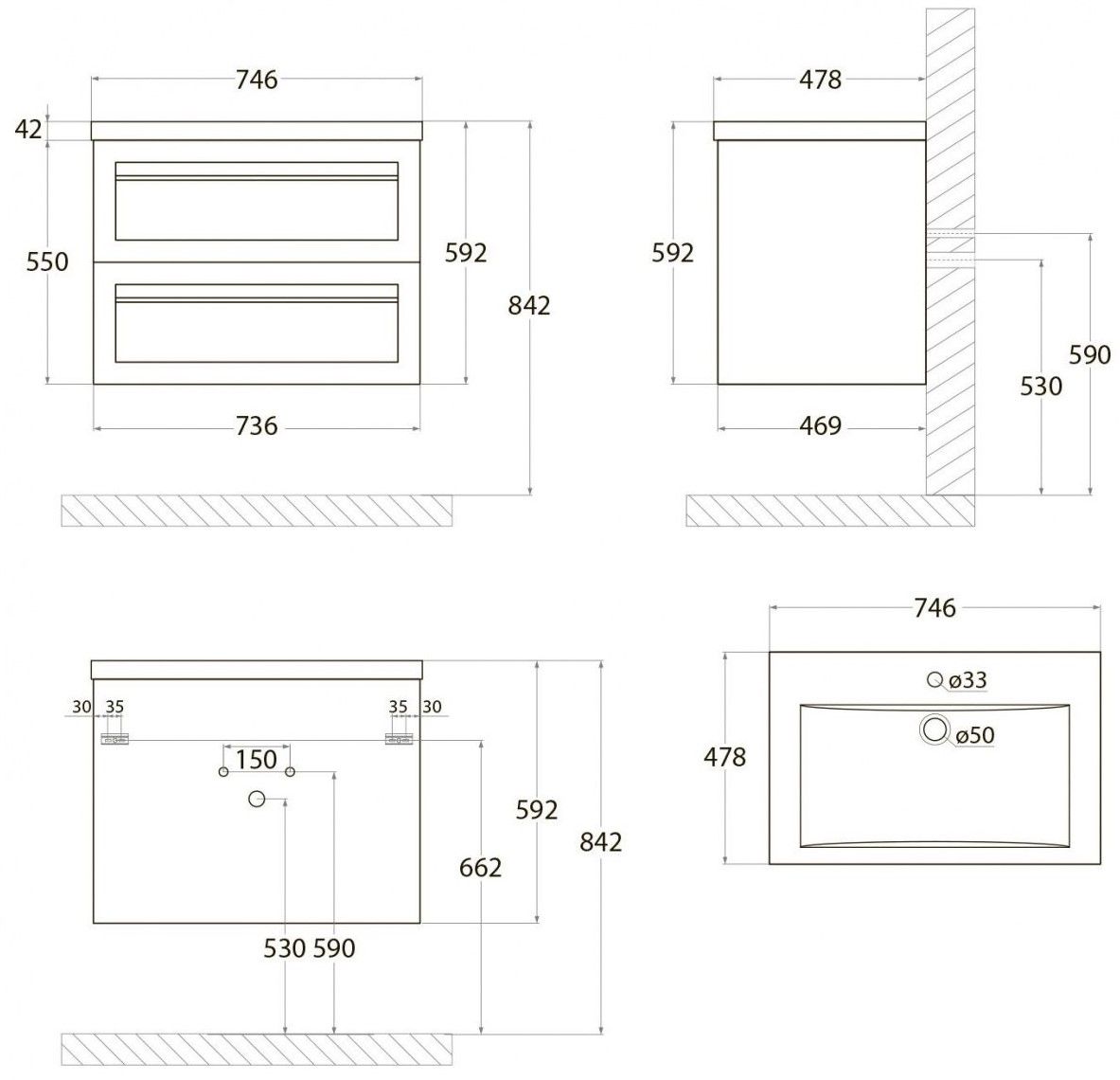 Тумба под раковину Art&Max выполнена в современном стиле и прекрасно впишется в интерьер любой ванной комнаты. Благодаря подвесной конструкции изделие не занимает много места, позволяет экономить пространство и облегчает уборку. Модель оснащена двумя выдвижными ящиками с доводчиками. Фасад изделия выполнен из МДФ.Тумба может использоваться вместе с раковиной AM-LAV-750-MR-A.Раковина и смеситель в комплект поставки не входят и приобретаются отдельно.Особенности: