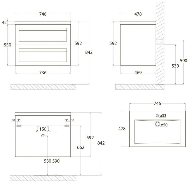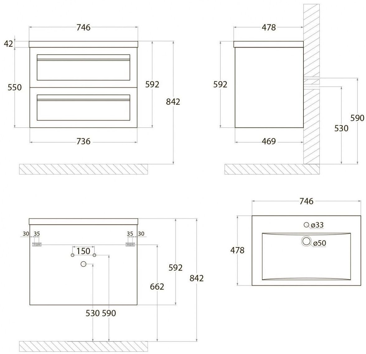 Тумба под раковину Art&Max выполнена в современном стиле и прекрасно впишется в интерьер любой ванной комнаты. Благодаря подвесной конструкции изделие не занимает много места, позволяет экономить пространство и облегчает уборку. Модель оснащена двумя выдвижными ящиками с доводчиками. Фасад изделия выполнен из МДФ.Тумба может использоваться вместе с раковиной AM-LAV-750-MR-A.Раковина и смеситель в комплект поставки не входят и приобретаются отдельно.Особенности: