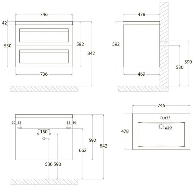 Тумба под раковину Art&Max выполнена в современном стиле и прекрасно впишется в интерьер любой ванной комнаты. Благодаря подвесной конструкции изделие не занимает много места, позволяет экономить пространство и облегчает уборку. Модель оснащена двумя выдвижными ящиками с доводчиками. Фасад изделия выполнен из МДФ.Тумба может использоваться вместе с раковиной AM-LAV-750-MR-A.Раковина и смеситель в комплект поставки не входят и приобретаются отдельно.Особенности: