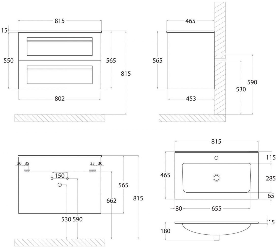 Подвесная тумба под раковину Art&Max Platino 80см серый матовый AM-Platino-800-2C-SO-GM-Cer