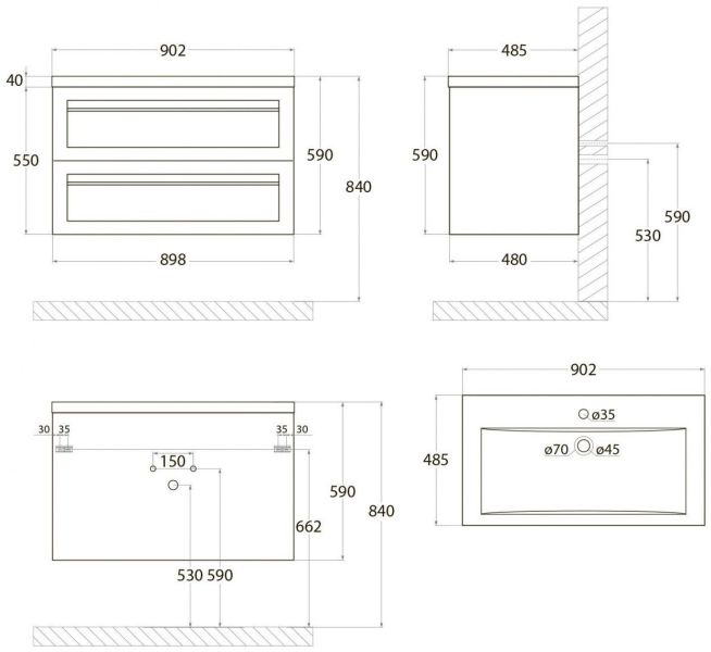 Тумба под раковину Art&Max выполнена в современном стиле и прекрасно впишется в интерьер любой ванной комнаты. Благодаря подвесной конструкции изделие не занимает много места, позволяет экономить пространство и облегчает уборку. Модель оснащена двумя выдвижными ящиками с доводчиками. Фасад изделия выполнен из МДФ.Тумба может использоваться вместе с раковиной AM-LAV-900-MR-A.Раковина и смеситель в комплект поставки не входят и приобретаются отдельно.Особенности: