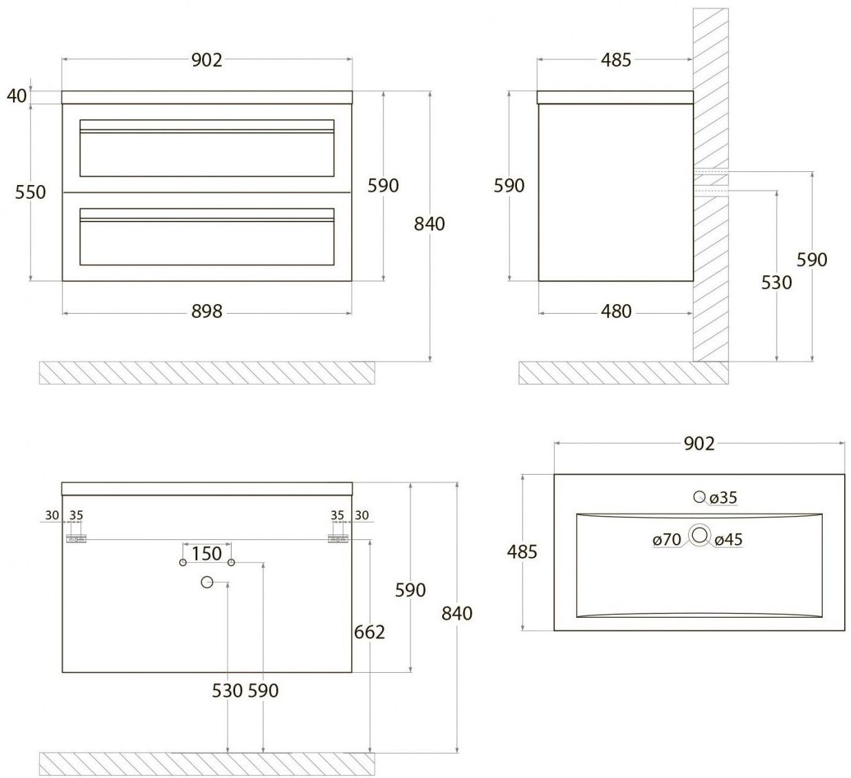 - Рекомендуемая высота от пола: 840 мм