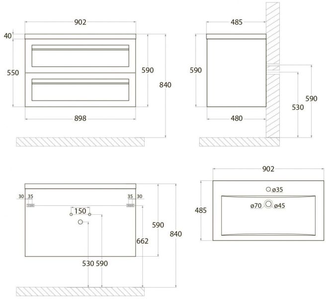 - Рекомендуемая высота от пола: 844 мм