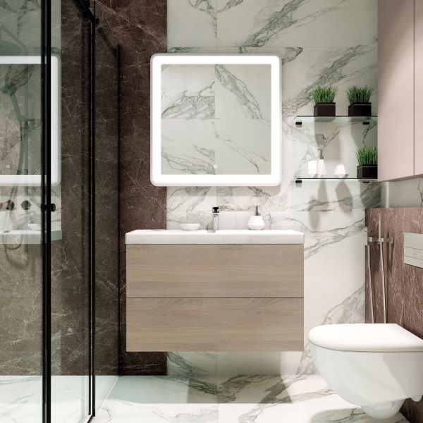 Подвесная тумба под раковину Art&Max Verona Push 90см дуб сонома AM-Verona-Push-900-2C-SO-RS-TS