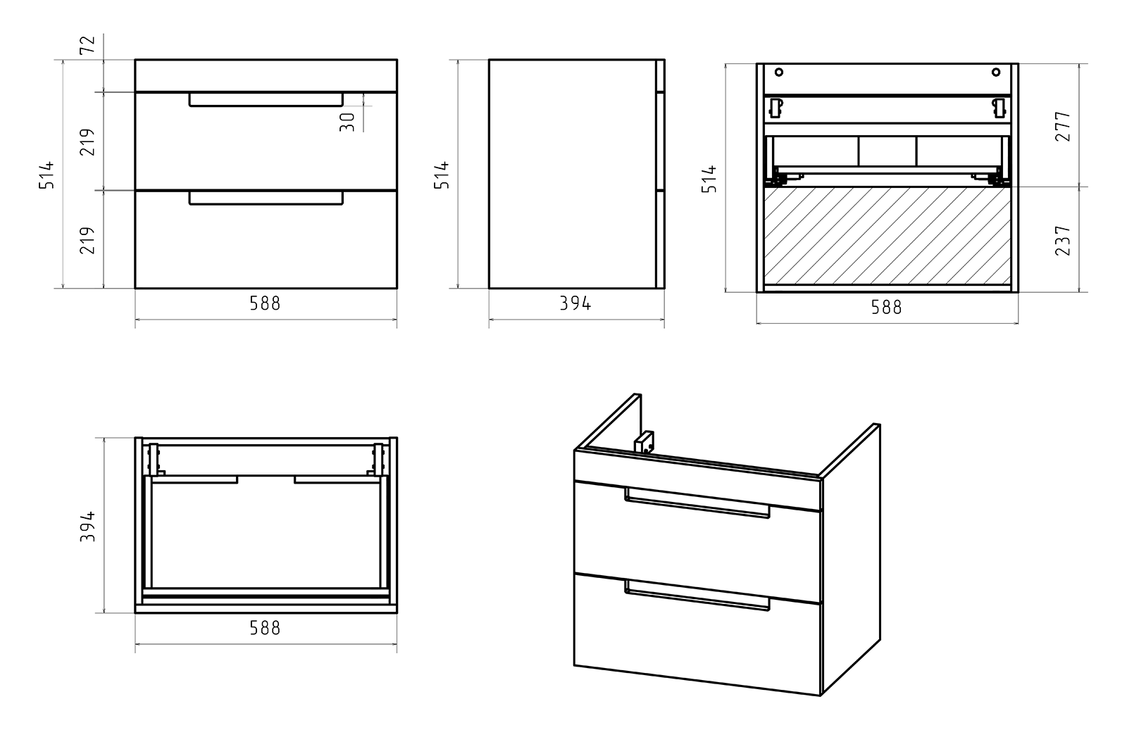 Подвесная тумба под раковину Brevita Ariana ARI-01060-03062Я 60см капучино