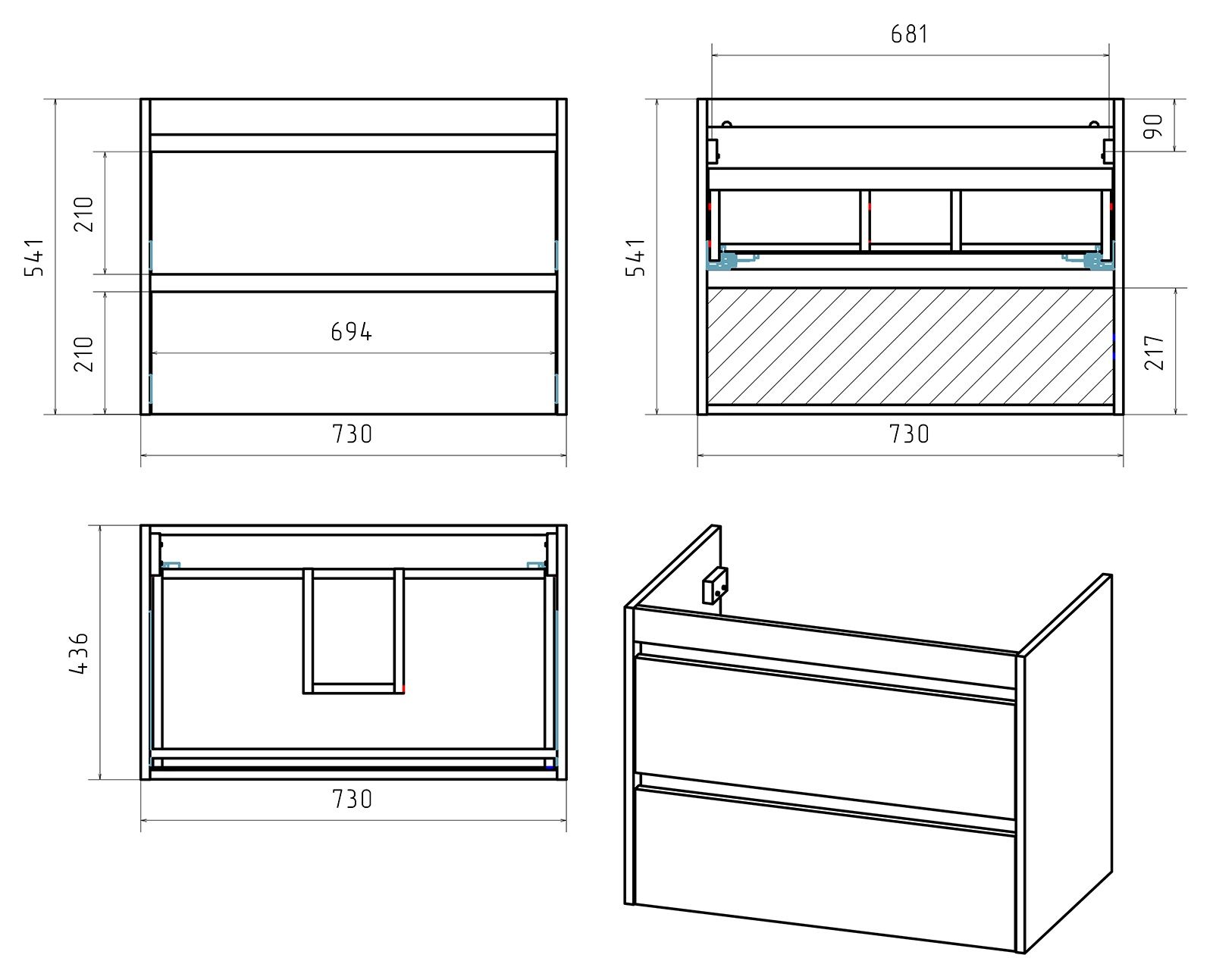 Подвесная тумба под раковину Brevita Balaton BAL-06075-01-012Я 75см белый/серый купить