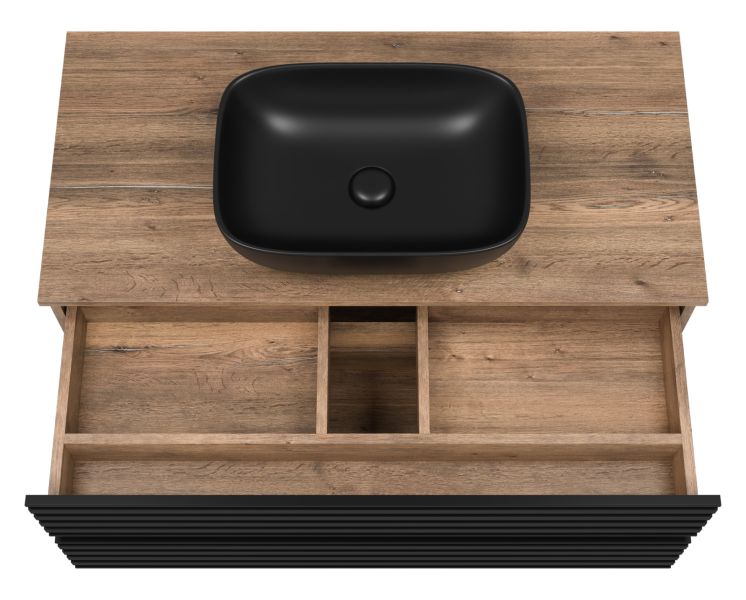 Подвесная тумба под раковину Brevita Dakota DAK-09100-19/02-2Я 100см дуб Галифакс олово/чёрный