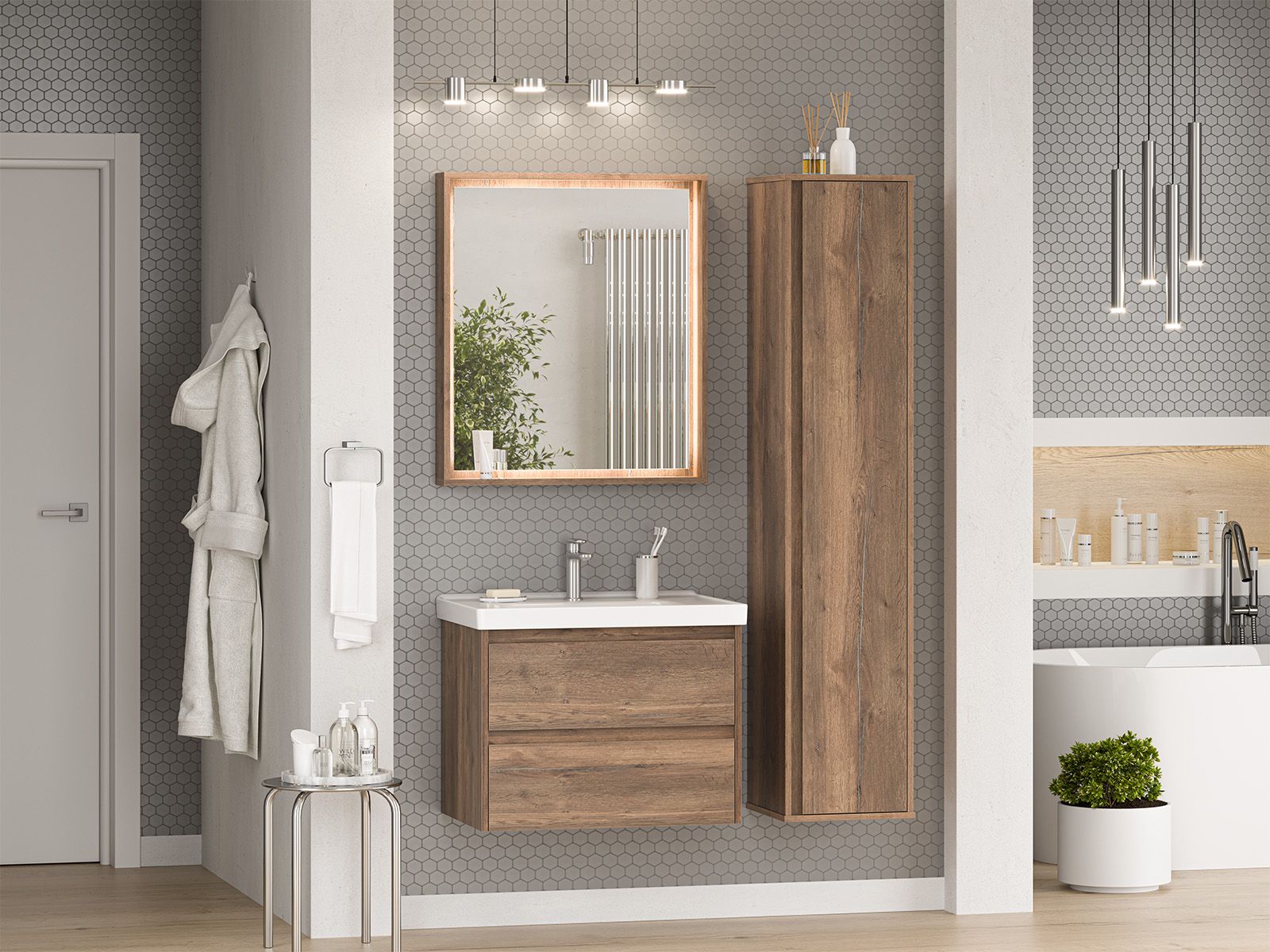 Подвесная тумба в ванную комнату – это не просто элемент мебели, а подлинный акцент в интерьере, который сочетает в себе функциональность и стиль. Она придаёт помещению лёгкость и воздушность, освобождая пространство на полу и создавая иллюзию большего объёма.Функциональные особенности таких тумб варьируются от наличия выдвижных ящиков до встроенных систем хранения, которые помогают организовать пространство ванной комнаты. Важным аспектом является также возможность выбора различных цветовых решений и отделок, что позволяет гармонично вписать тумбу в любой интерьер – от классического до ультрасовременного.С помощью подвесной тумбы ванная комната становится не только более удобной, но и эстетически привлекательной, создавая атмосферу уюта и роскоши.